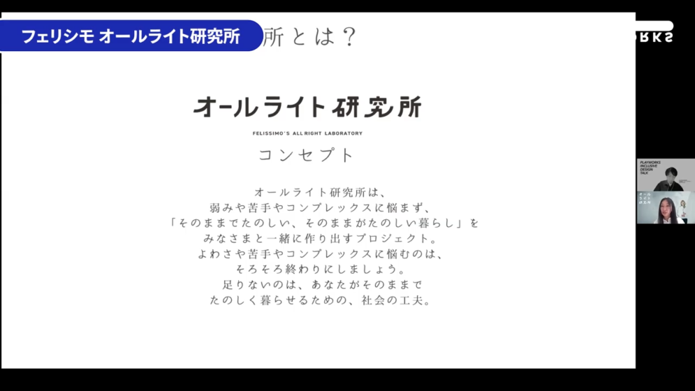 INCLUSIVE DESIGN Talk|フェリシモ オールライト研究所 筧麻子
