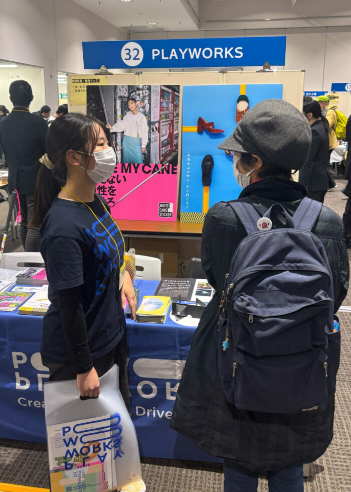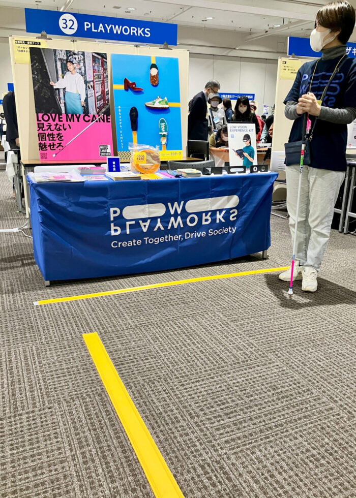 PLAYWORKS株式会社は「日本ライトハウス展 ~全国ロービジョンフェア2025~」に出展。会場に視覚障害者歩行テープ「ココテープ」を設置、PLAYWORKSブースでは「ロービジョン体験キット」の体験展示、「白杖ステッカー」の配布を行いました。